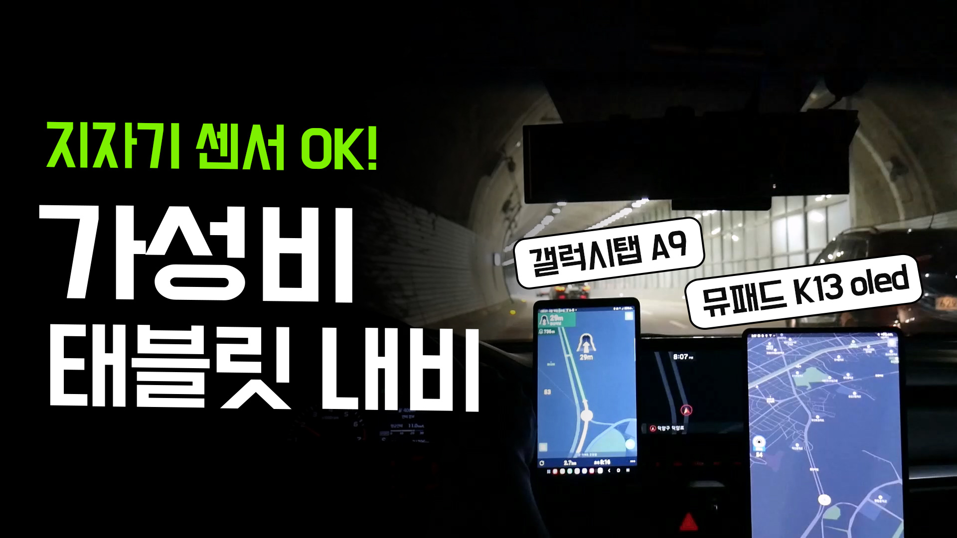 주내비 갤럭시탭A9 (8.7인치, LTE,GPS,지자기,조도)과 보조내비 아이뮤즈 뮤패드 K13 OLED(12.6인치, WIFI,GPS,지자기,조도)를 이용해 시승해 본 영상.