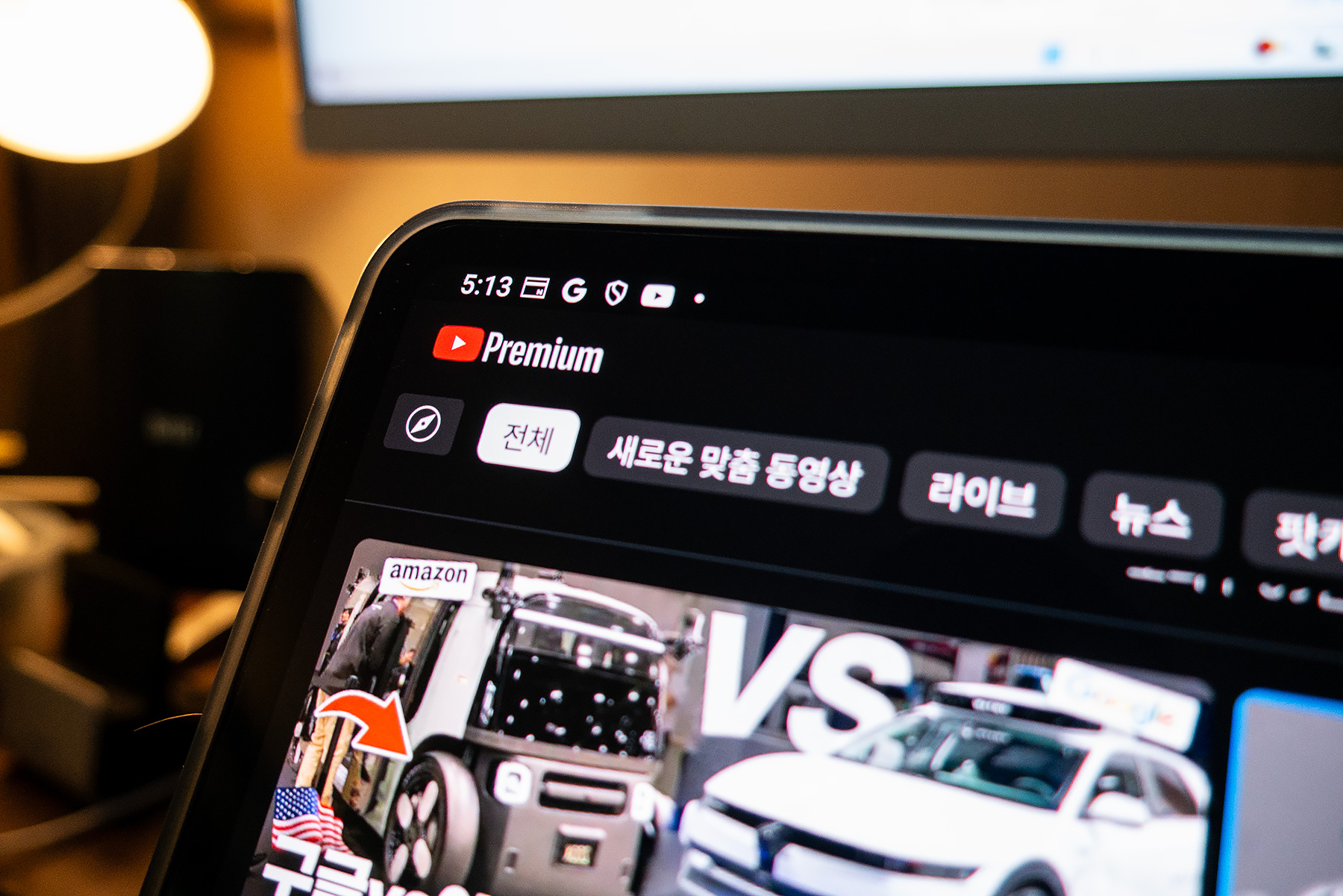 뮤패드 K13 OLED에서 유튜브 사용 경험. 쾌적하다. 평소 뉴스를 좋아하시는 데 이 정도면 충분하다.